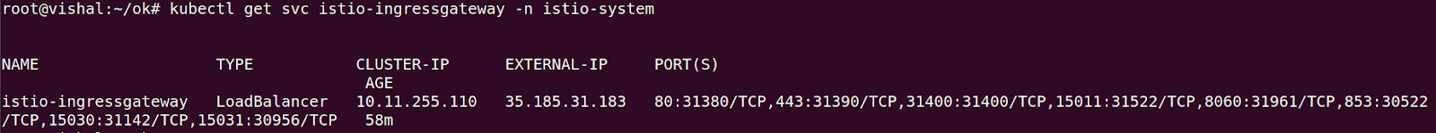 $ kubectl get svc istio-ingressgateway -n istio-system